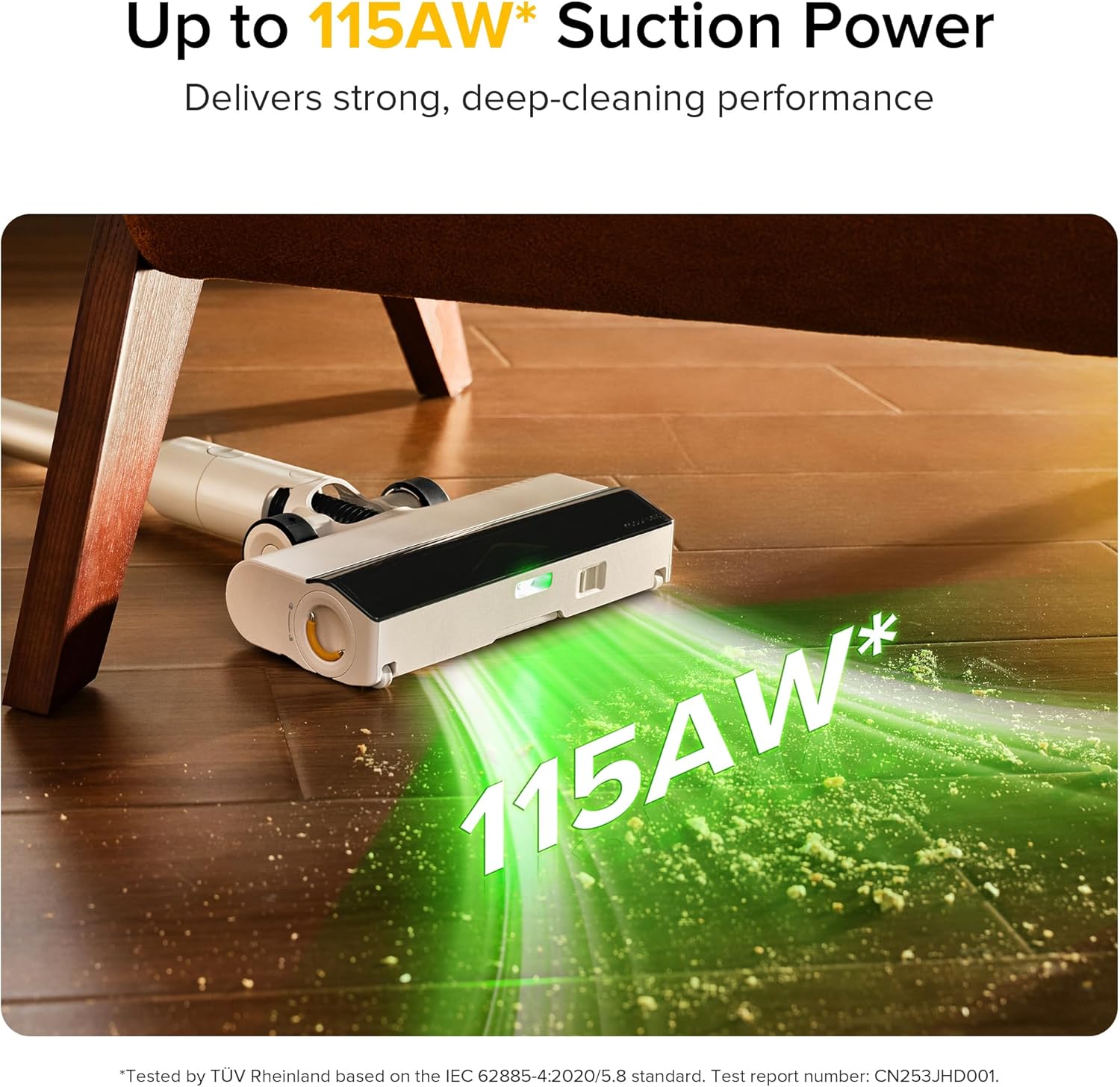 - Green LED Light for Hidden Dust: The 140° wide-angle green LED illuminates fine dust and hard-to-see dirt in dim areas like under furniture and along edges—ensuring a more thorough clean with the innovative cordless vacuum cleaner.