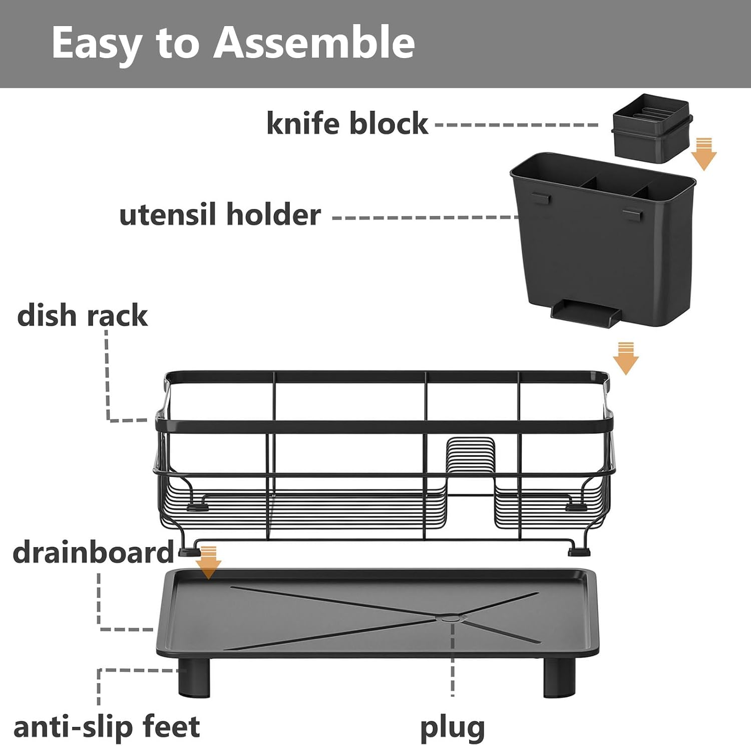 - Easy to Assemble: No extra tools needed, sturdy wire frame, raised plastic drainboard, easy to clean