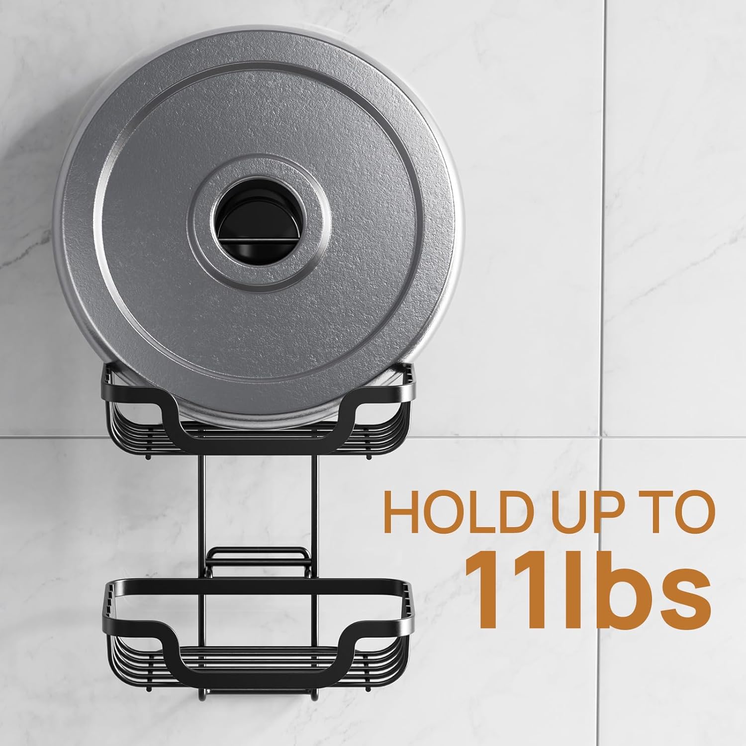 LEVERLOC 2 Tier Soap Holder, Soap Bar Dish for Shower Wall Mounted, Stainless Steel Suction Cup Sponge Holder for Bathroom Bathtub Kitchen Sink, Waterproof, Removable, Keep Dry, Black