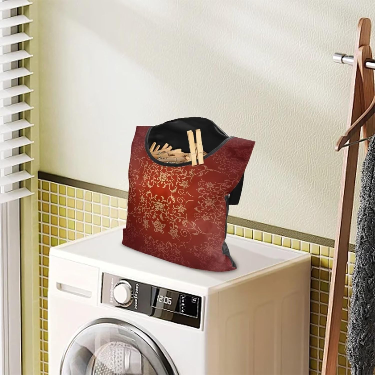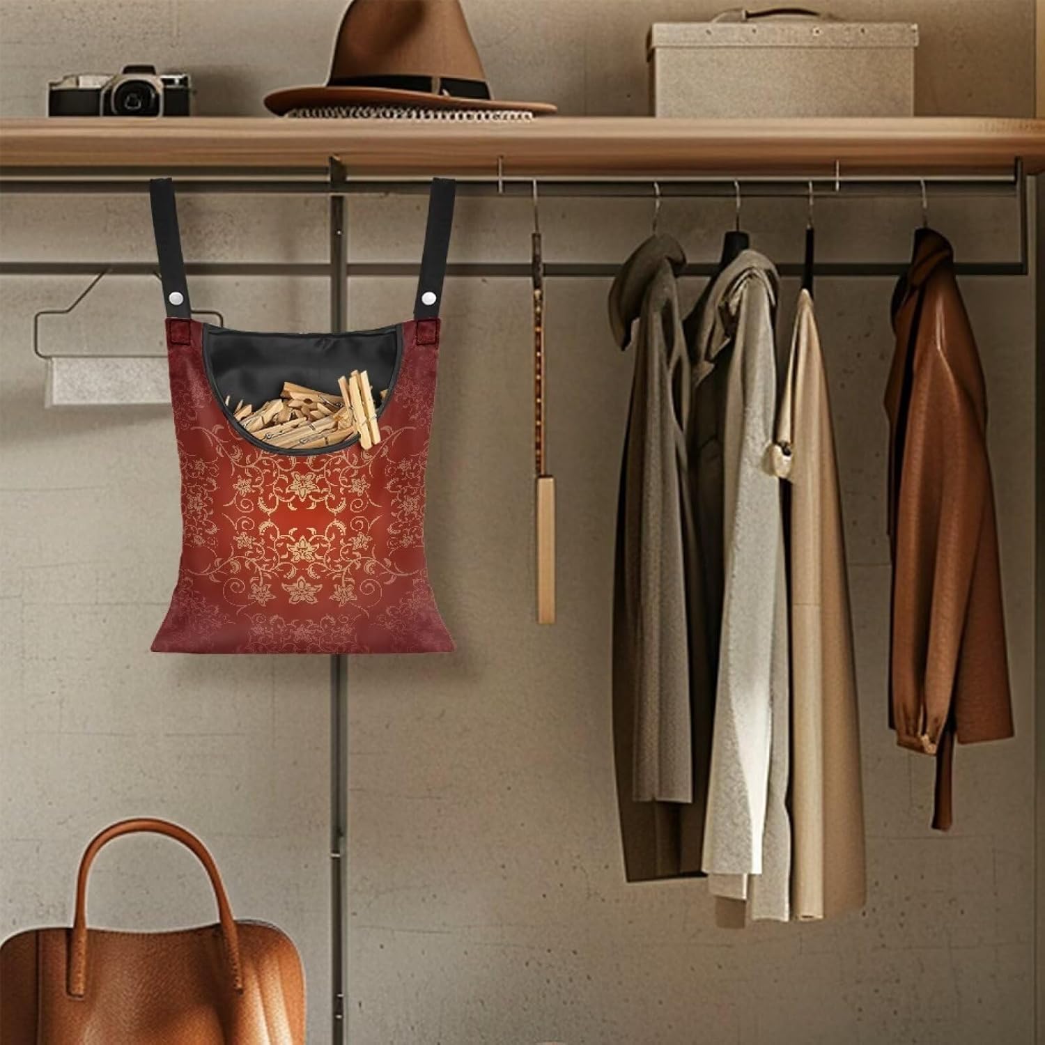 Home Outdoor Clothespin Holder - Windproof & Water Resistant Storage Bag - Commercial Quality Hanging Organizer for Laundry Businesses Classic Flower Pattern Print 14.5x12in