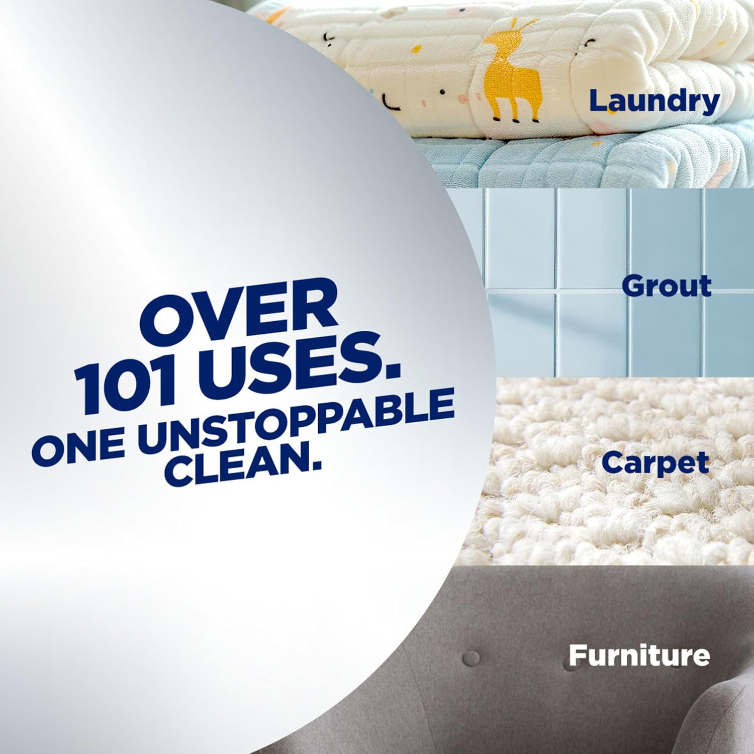 - 3X STAIN FIGHTERS vs. leading value detergent alone per load; use it in every load to remove stains; and at home on surfaces like grout, upholstery, carpet, patio furniture and storage bins; with 101 cleaning and stain-fighting uses for home and laundry
