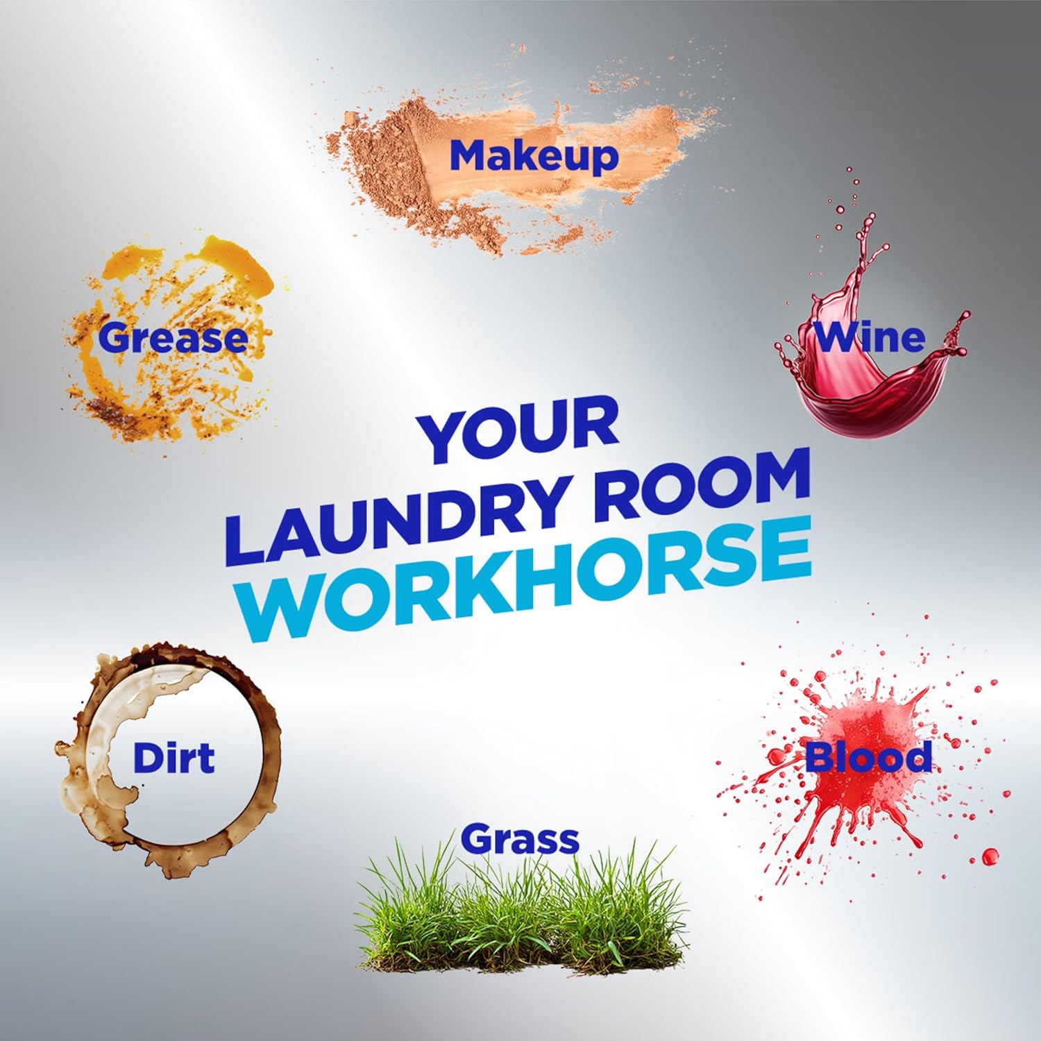 - TACKLES TOUGH STAINS like oil, grease, coffee, wine, chocolate, ketchup, berries, fruit juice, grass, mud, blood, ink and washable paint; it works on machine-washable fabrics like bedding, towels, washable sneakers, and sports uniforms