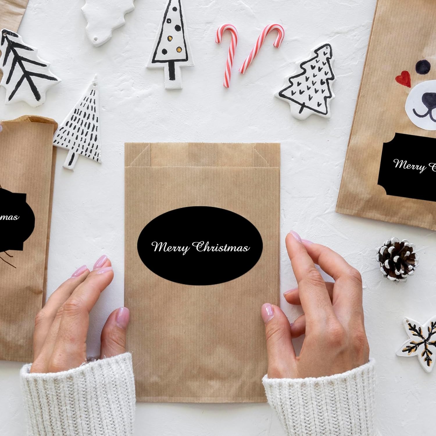 - 【Widely Usage】Just need to peel off the sticker, write words and stick them where you want. With different color paper element, these sticker labels can not only be applied as Christmas gift tags, but also for wedding, birthday, mailing labels, name tags, etc.