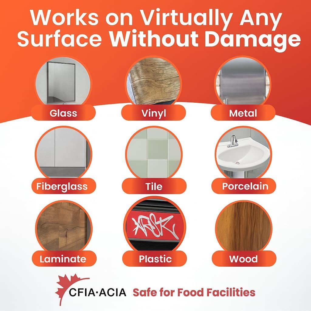 - Versatile & Effective Anywhere – Ideal for use on bathroom partitions, aluminum siding, road signs, wall tiles, stainless steel, lockers, billboards, bus stops, and more