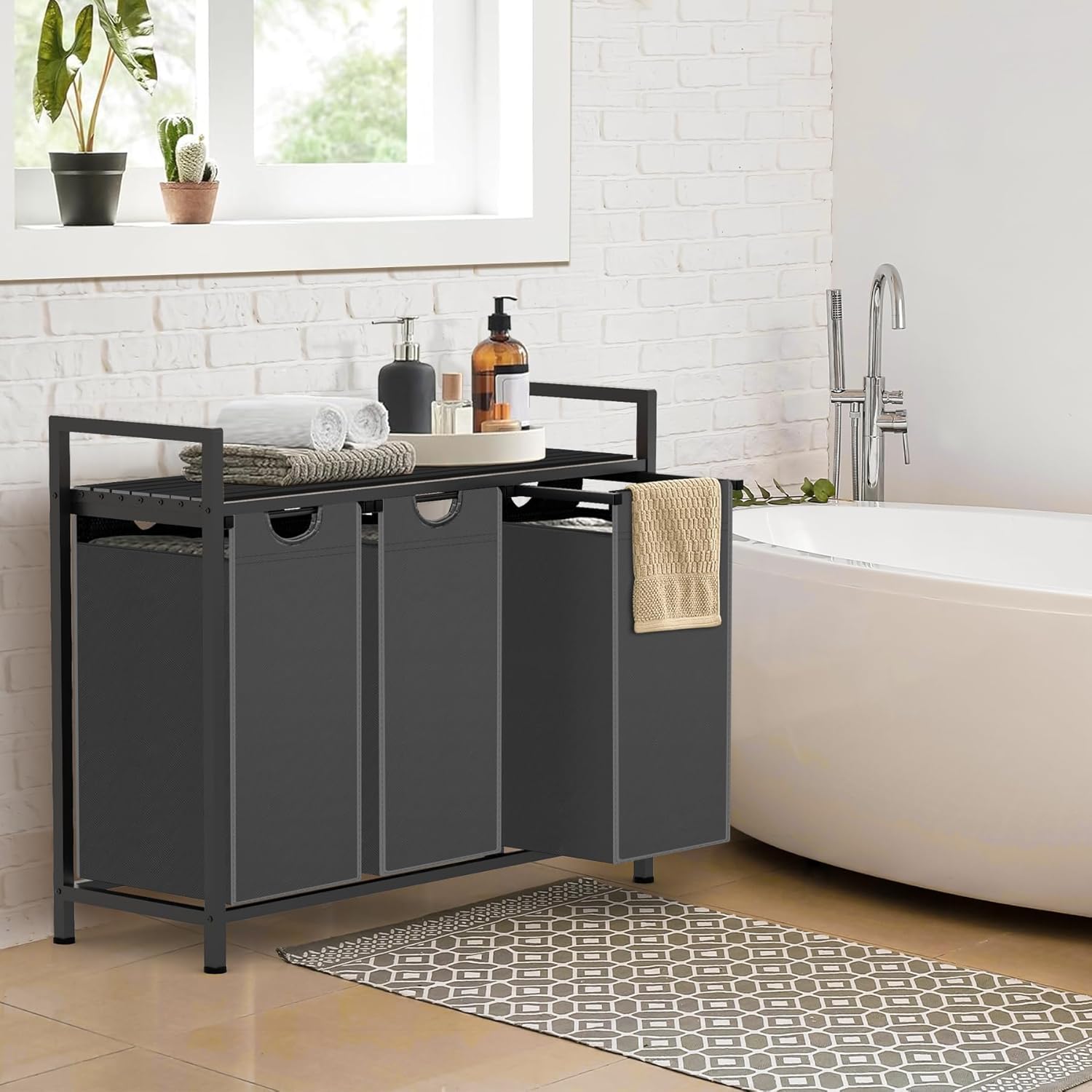 - 3 Removable Bags - The laundry hamper has a total capacity of 30 gallons, with each liner holding 10 gallons. Its 3 compartment design enables you to organize your laundry by type and separate light laundry from different family members.