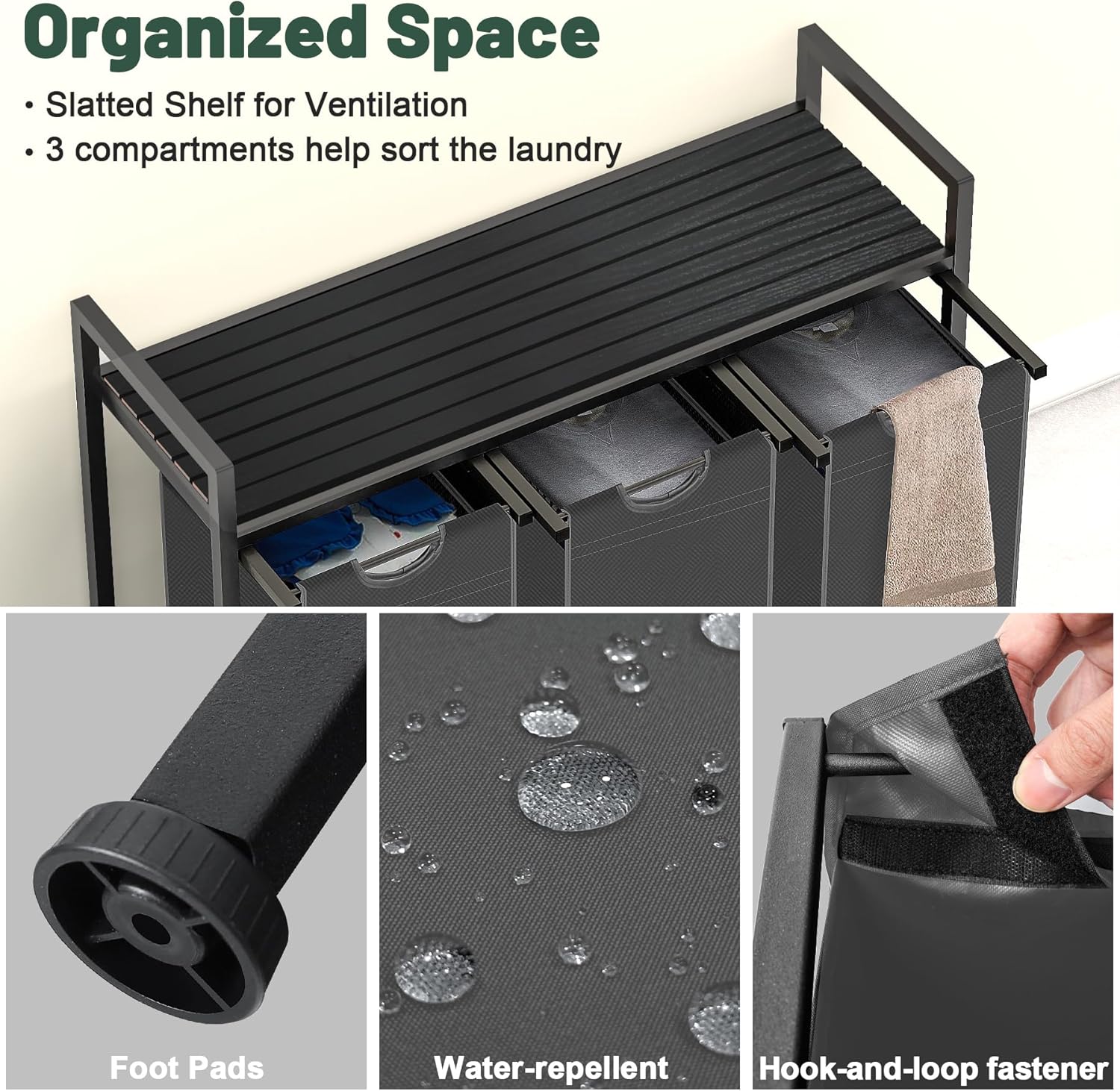 - Construction Design - With 4 adjustable feet, you will not have to worry about stability, and it is also adaptable to different spaces. Adjustable feet protect your floor from scratches. Strong steel frame and water-resistant wood top offer stable support. This laundry hamper comes with detailed instructions manual and all hardware needed, it is easy to assemble.