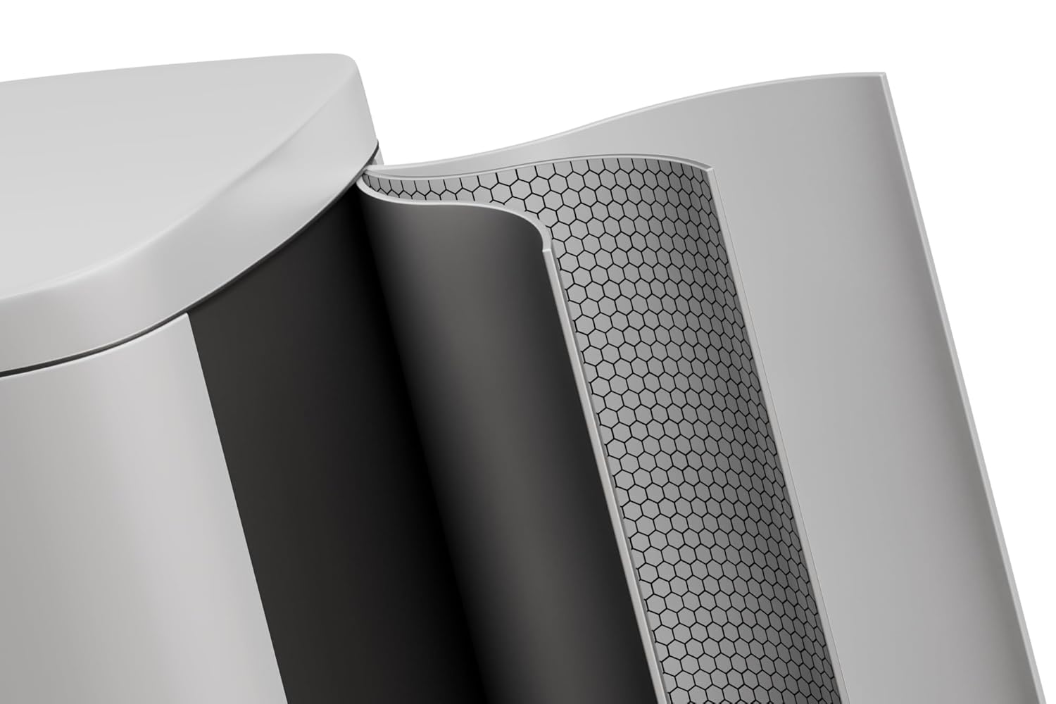 - [MINIMAL FORM, EXQUISITE DETAIL] – The Garvee powder coated metal kitchen trash can boasts a fingerprint-resistant finish that wipes clean in seconds. The thick lid with extended overhang lip conceals bag edges for a seamless profile, while anti-slip rubber feet keep the bin firmly in place on tile, hardwood, or low-pile carpet