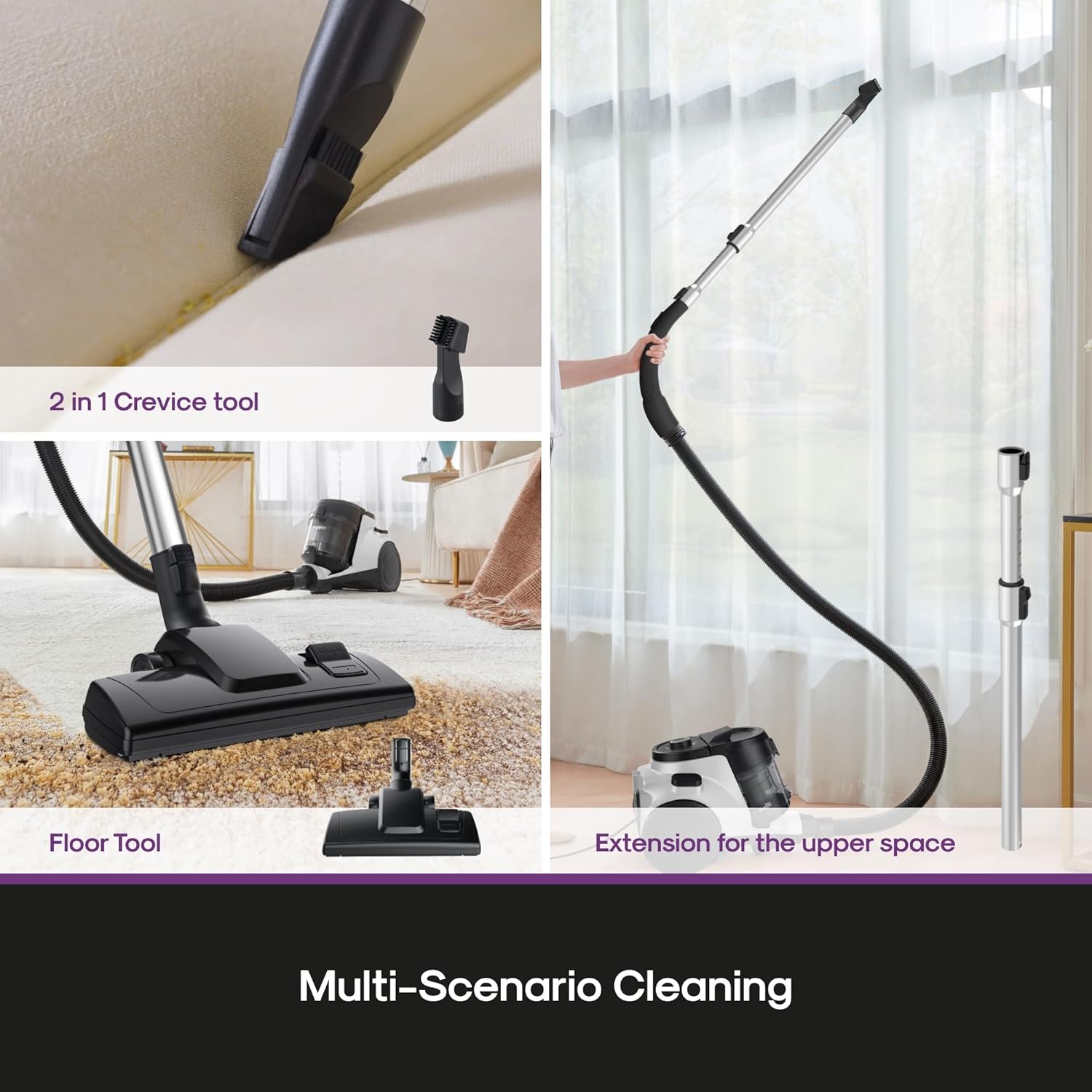Eureka Bagless Canister Vacuum Cleaner, 1100W High Power Vacuum Cleaner for Carpets and Hard Floors HEPA Filter Extension Tube 2-in-1 Crevice Tool Floor Nozzle, NEN121WH