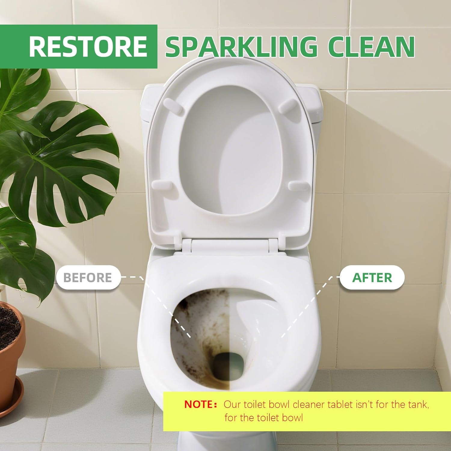 - Deep Clean & Deodorize: TIMOHCR concentrated cleaning tablets easily dissolve tough stains, limescale, and mineral deposits while deodorizing your toilet, keep toilet bowl stain free and sparkling clean with minimal effort, powerful clean toilet bowl tabs