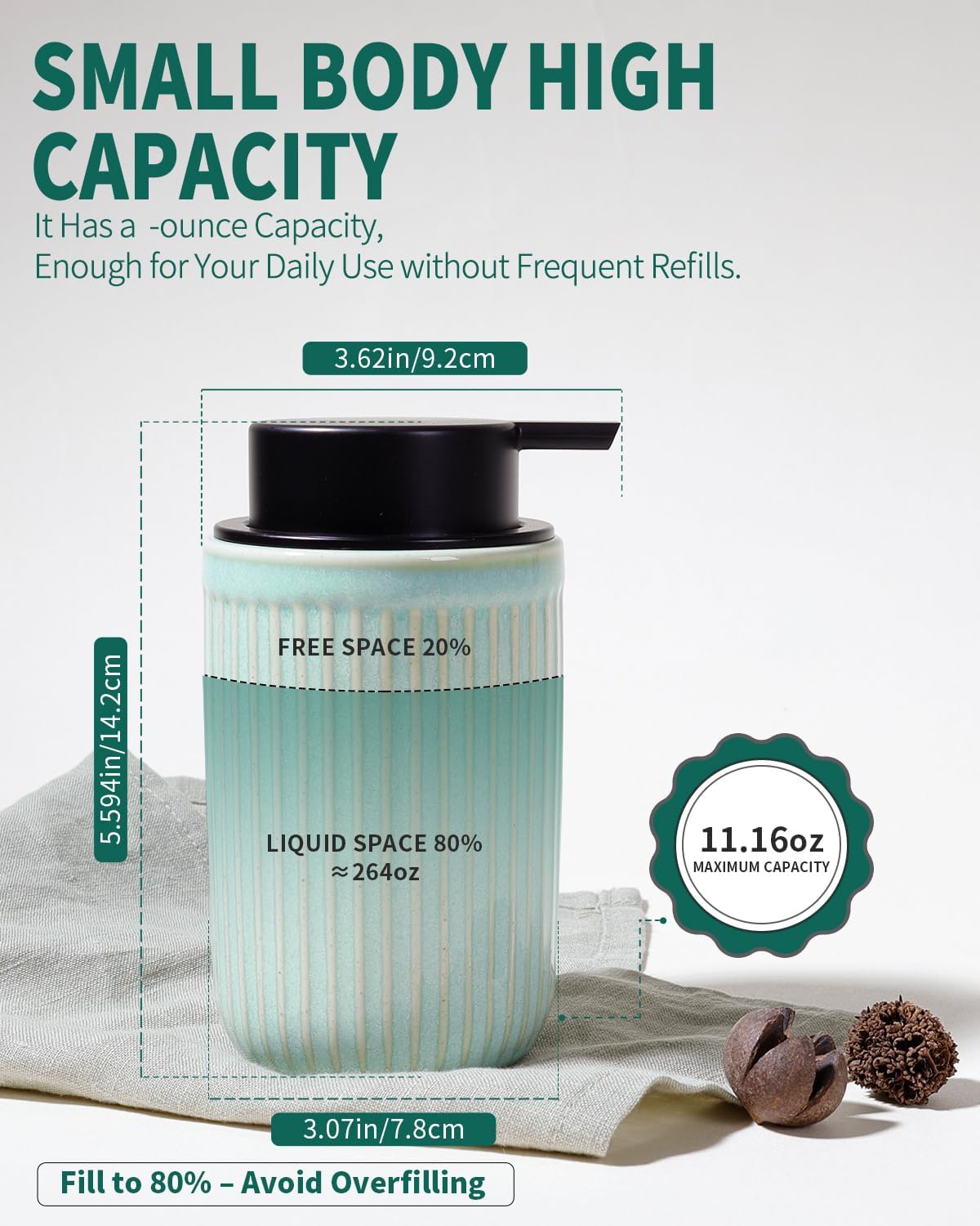 - Reusable Dispenser: The liquid dispenser is made of high-quality ceramic, durable & lead-free. Thick matte porcelain surface, which is more comfortable. It' s safe to use and easy to clean