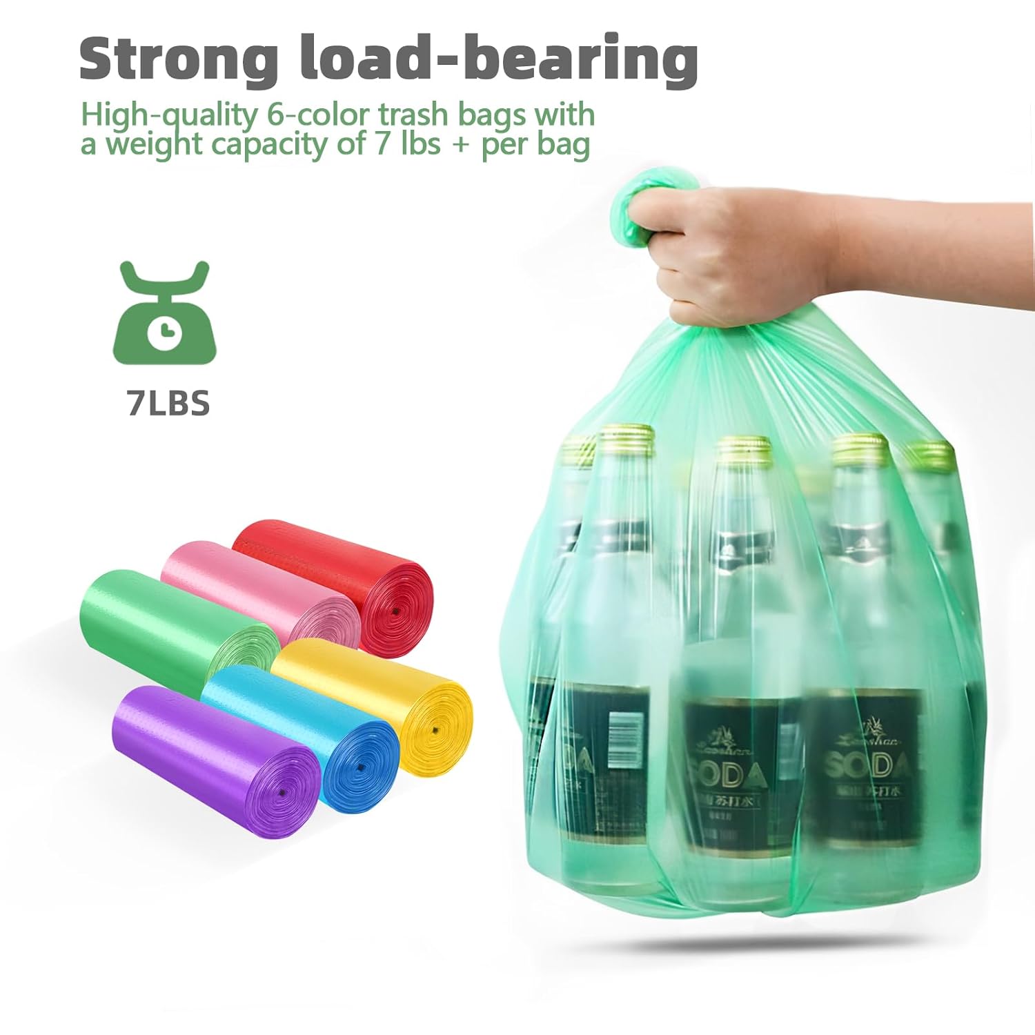 - đïžăBonus 6 Extra-Thick Garbage BagsăEach set includes 6 premium garbage bags in assorted colorsâtear-resistant and leakproof, with a 7+ lb load capacity. No more flimsy bags! Ideal for disposing of tissues, wipes, or light household waste without worry.