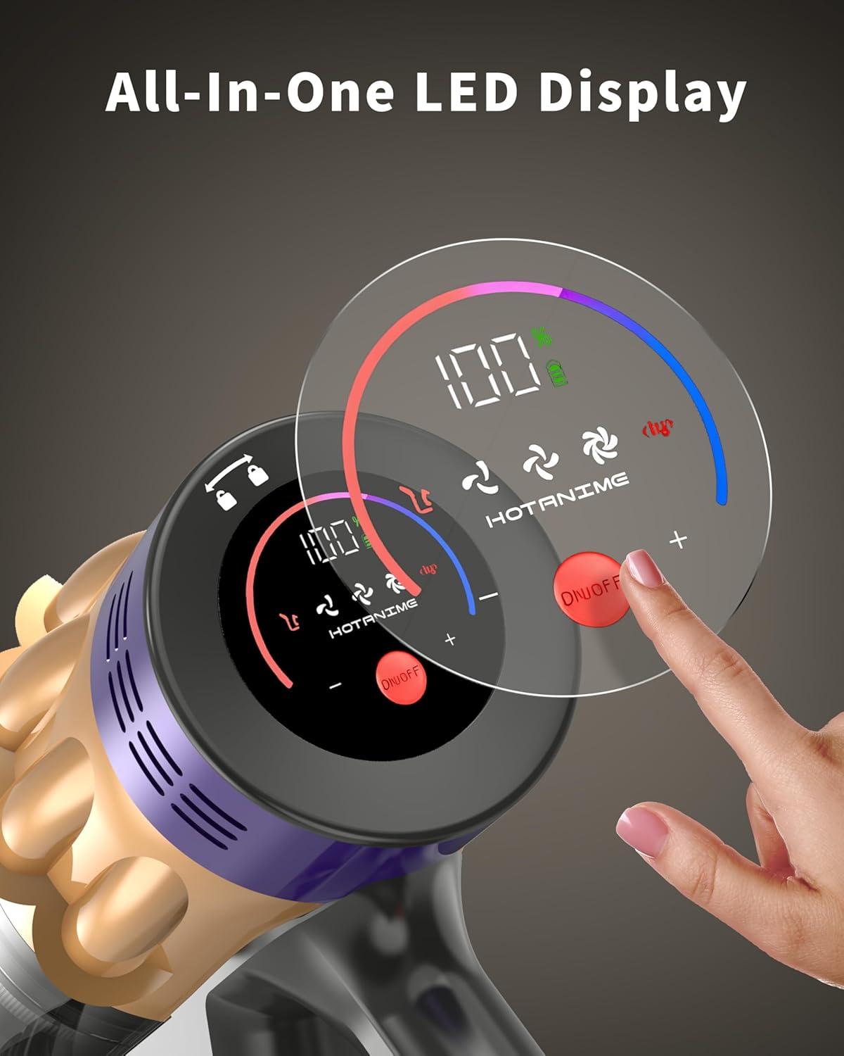 - 【LED Touch Display Screen】This cordless vacuum cleaner is equipped with an LED smart touch screen, featuring an intuitive and easy-to-understand interface that displays real-time battery level, suction power mode, brush roller jam warning, and dust inlet blockage alert. The telescopic handle of the vacuum cleaner is ergonomically designed, allowing you to easily adjust its length according to different cleaning scenarios.