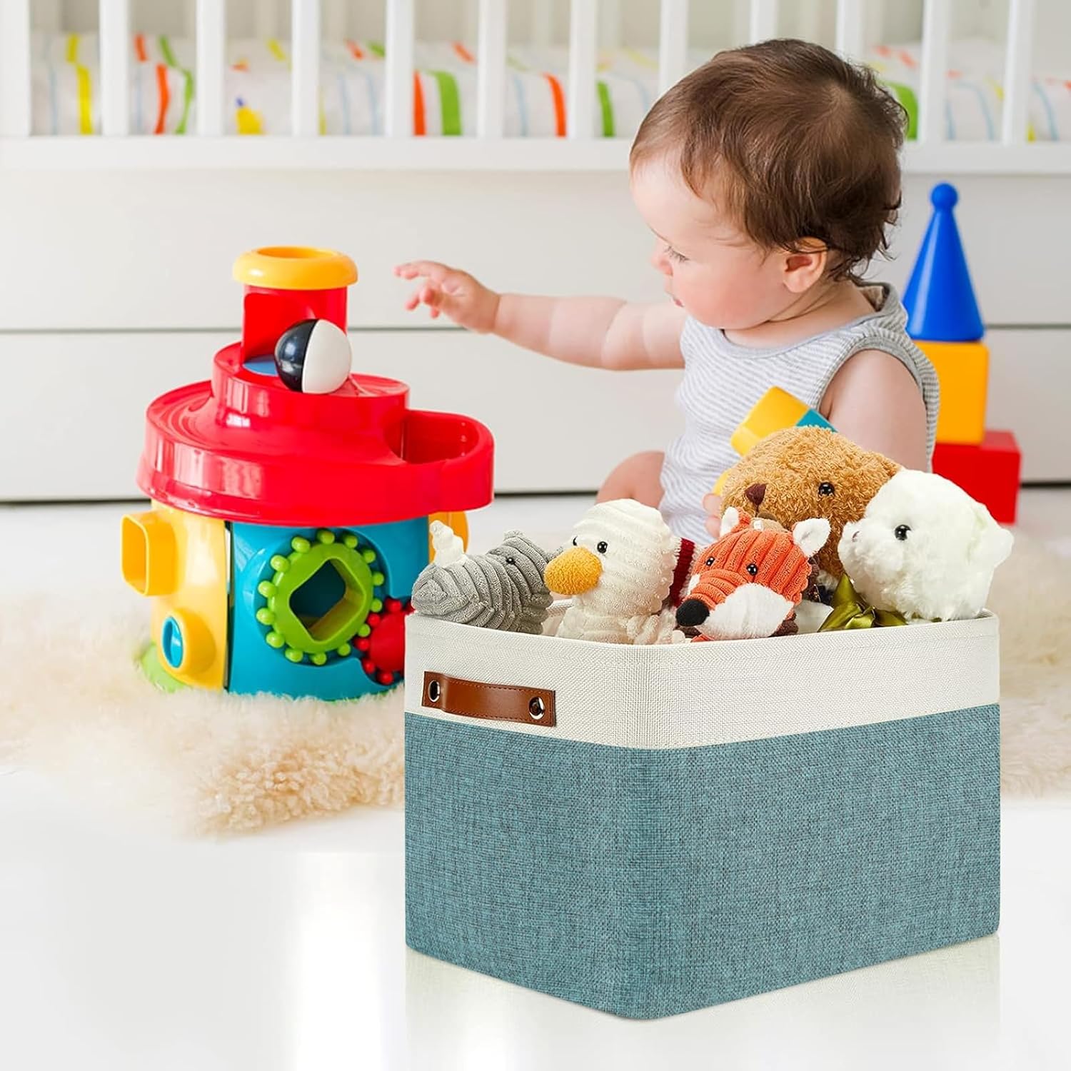 - FOLDABLE DESIGN: 4 pcs. With dimensions of 15"x11"x9.5", the decorative storage baskets are the perfect size for most storage cabinets, and they can meet a wide range of storage needs. The closet baskets can be folded up when not in use and will save your living space to the maximum. The nursery storage basket you purchased is received in a folded state, you can open it and put a full pillow, blanket, etc. inside, or use steam ironing at low temperatures to eliminate the creases.
