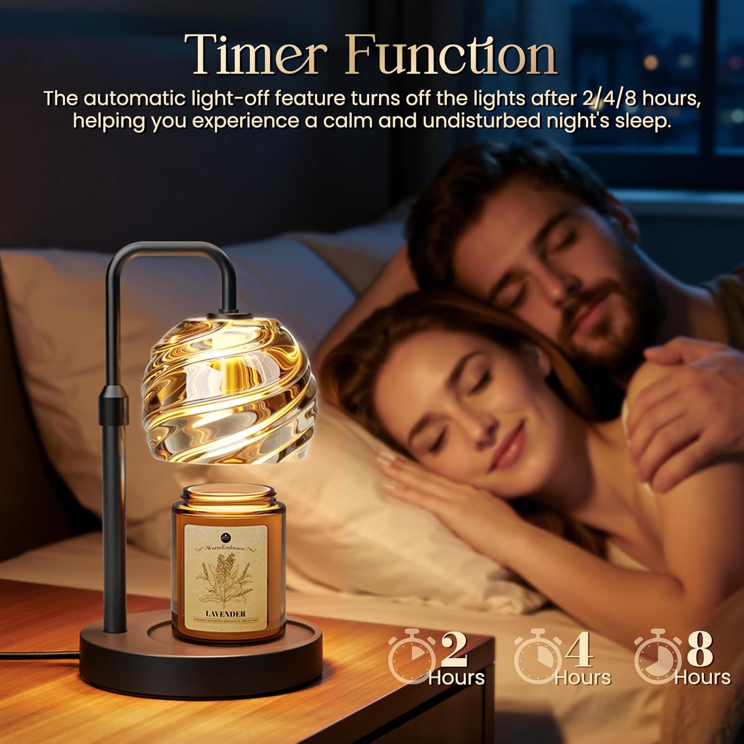 - 4 Dimmable Lights & Auto Timer: Ambiance and melting rate of the wax are controlled by 4 brightness settings. The built-in timer (2/4/8H) automatically shuts off this candle warmer lamp with timer for safe, worry-free operation overnight or when you're away