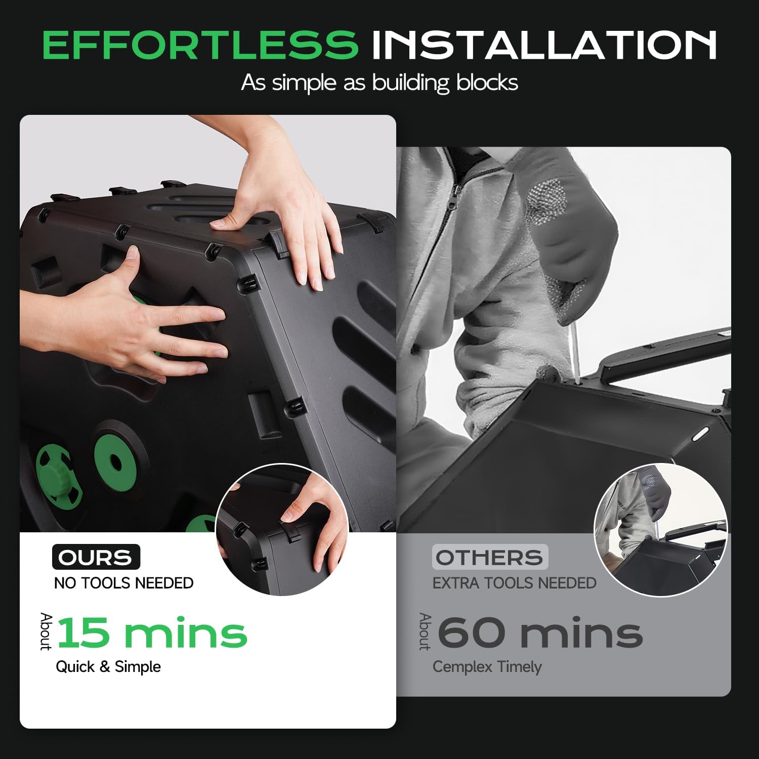 - 【SUPER Fast Assemble】[We provide STEP-BY-STEP installation videos; if you encounter any issues, please do not hesitate to contact.] Unlike traditional outdoor compost bins, TOP XIAN 2025 new upgraded compost bin assembles in minutes. Simply snap components together, no frustrating screws or wrenches. Ideal for composting beginners or anyone who hates complicated assembly