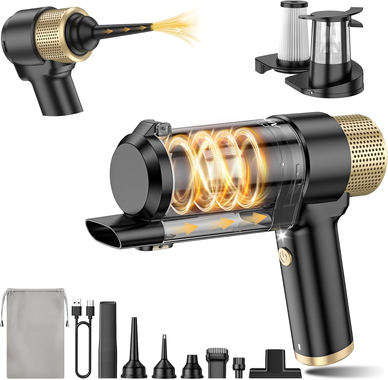 AHNR Handheld Car Vacuum Cleaner Cordless with 16000PA Powerful Suction, 4-in-1 Portable Mini Vacuum Cleaner & Air Duster with Multi-Accessories, Hand Held Vacuum Cordless Rechargeable for Car Home