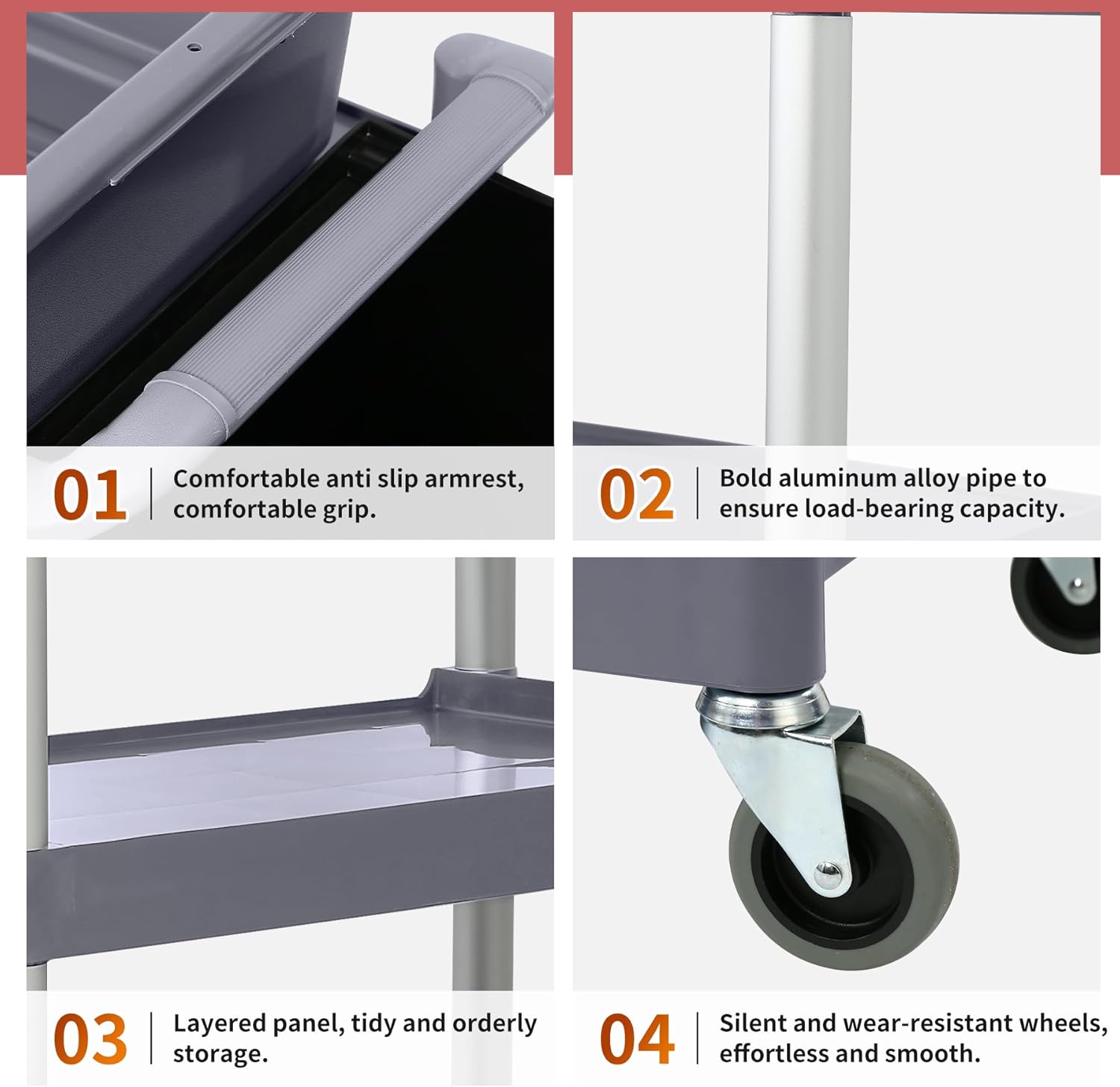 3-Tier Utility Rolling Cart with Wheels, Durable Catering carts with Wheels, Rolling Storage Cart for Hotel Canteen Resturant Office (Grey, 37" L x 16.54” W x 31.5" H) (Gray, 31.4"D x 16.5"W x 37.7"H)
