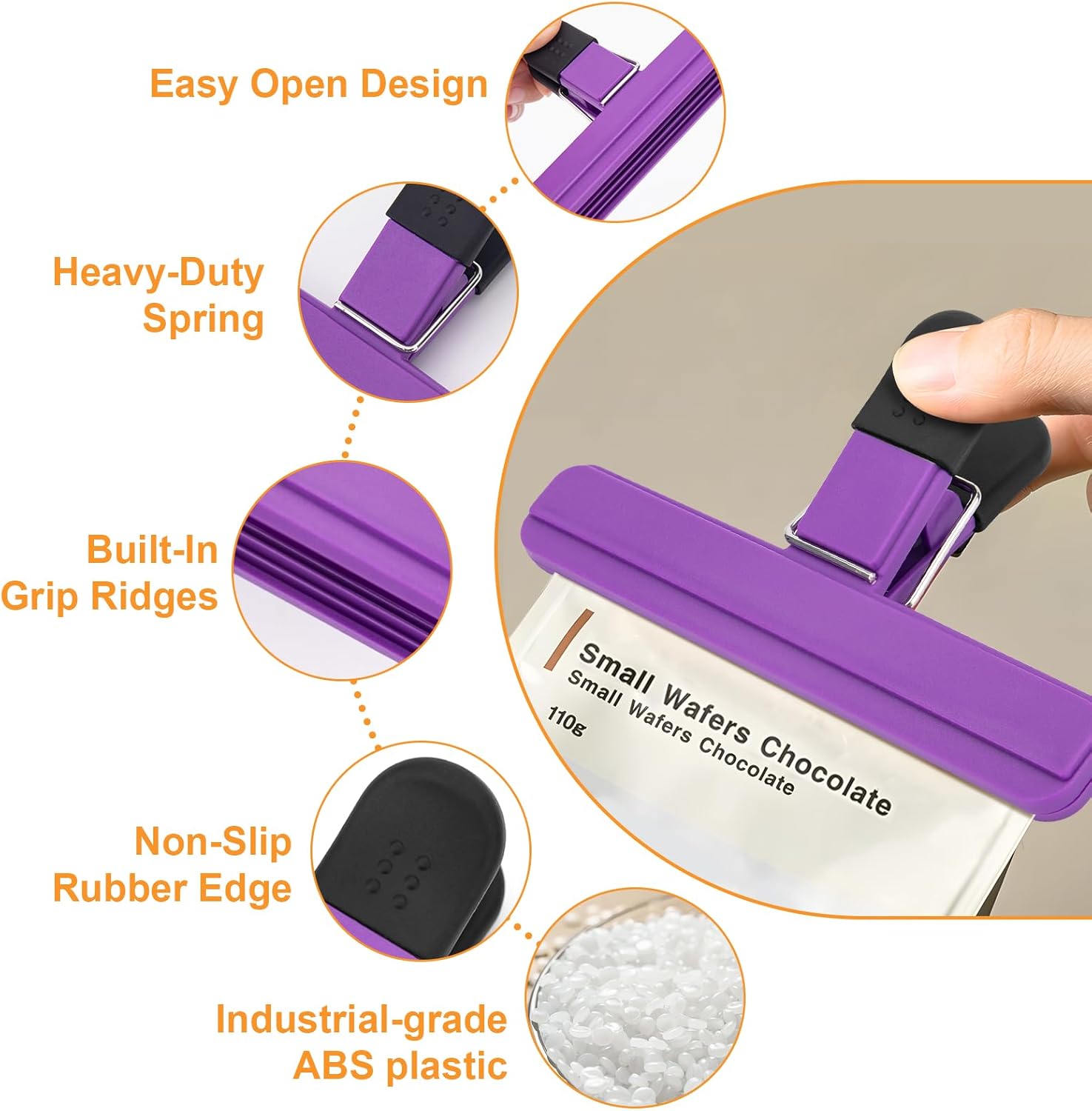 - 【Neat and Organized】Bag clips are designed to keep your kitchen organized. Effectively seals bags of chips, cookies and other foods to prevent spills and preserve freshness. Say goodbye to cluttered cupboards and hello to an organized kitchen