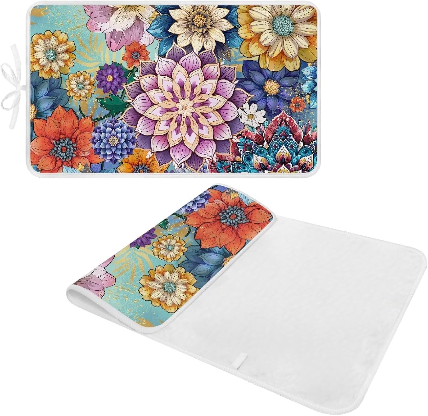 Ironing Mat Boho Flower Portable Ironing Pad Blanket for Table Top Heat Resistance Travel Small 32 x 16 Inch Foldable Lightweight Iron Mats for Washer and Dryer