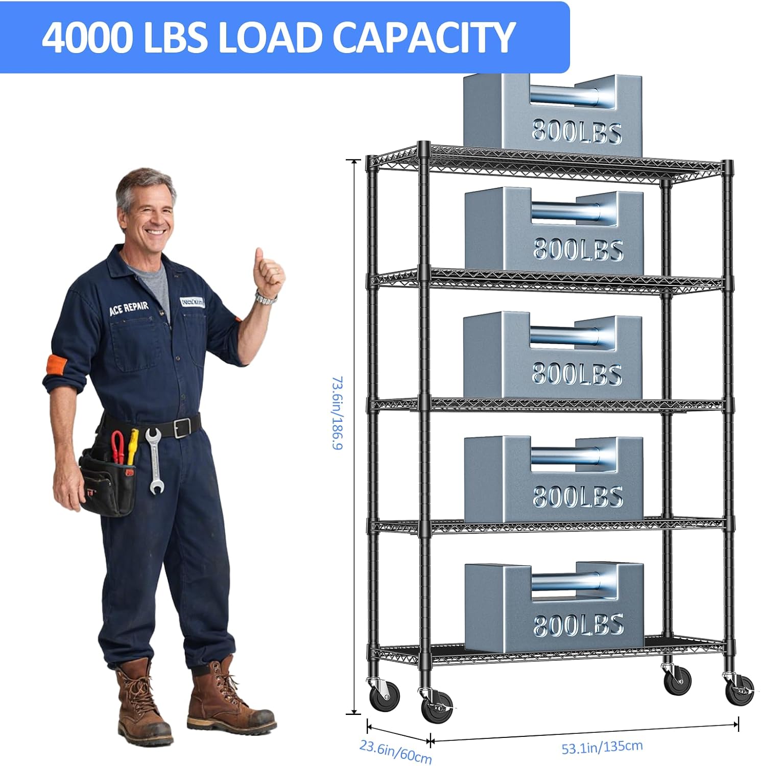 - Size : 5 Tier, 23.6" D x 53.1" W x 73.6" H