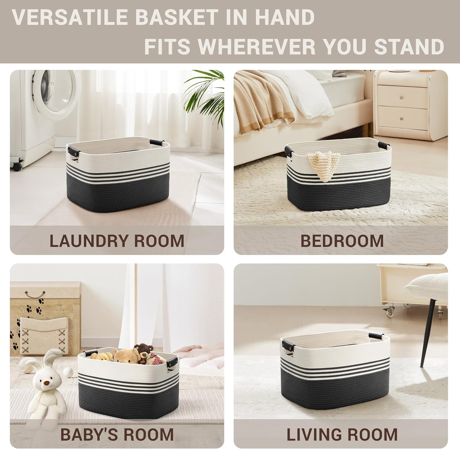 - DURABLE & HOME-FRIENDLY: Natural cotton rope weaving craft. The woven basket is crafted from high-quality cotton thread, making it sturdy and durable for long-term use. The SunNewt Large rectangular basket has no sharp edges, securing family safety and suitable for households with kids, the elderly , and pets