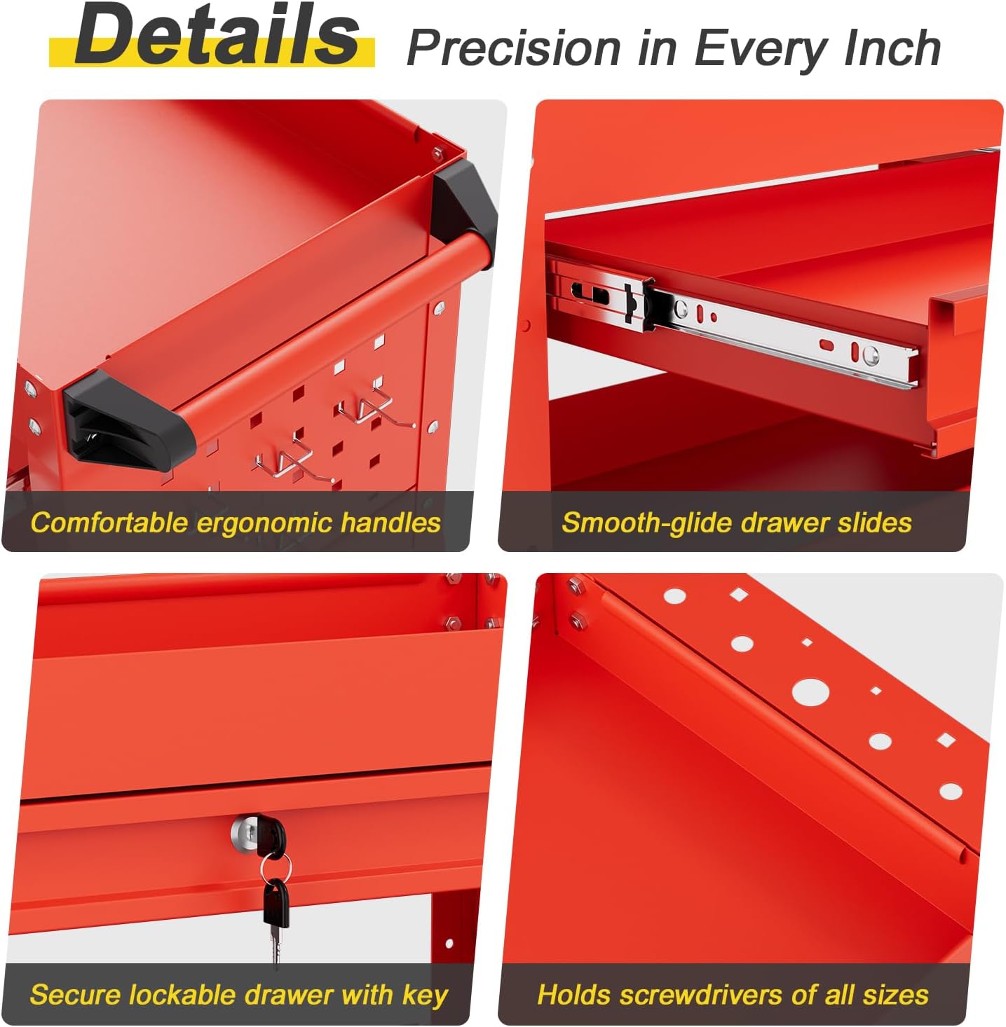 - Multi-Purpose Rolling Storage Cart – Works as a toolbox on wheels, maintenance cart, or utility cart with drawers. Ideal for professionals, DIY, and as a 3 tiered rolling cart for any workspace.