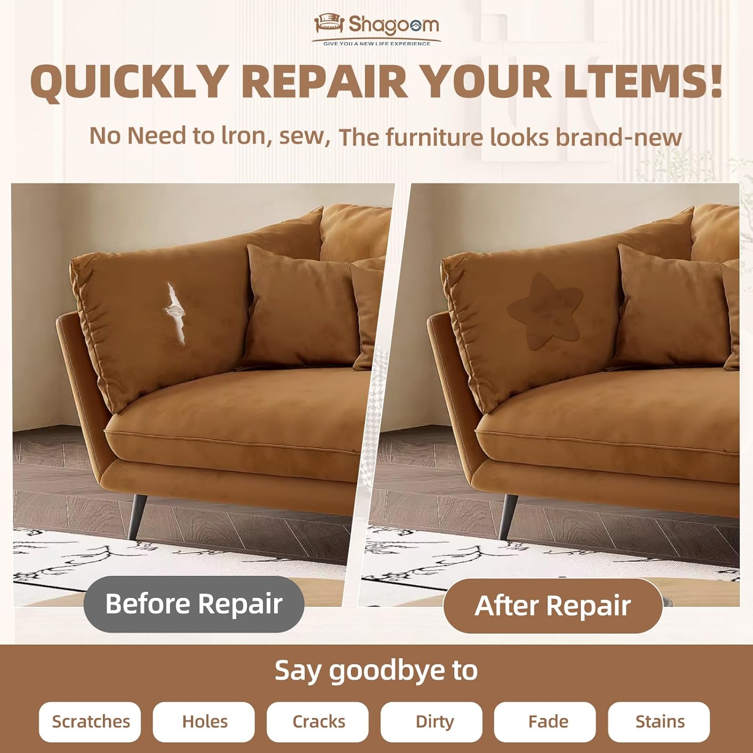 - Excellent Product: It can be used to repair all kinds of fabric damage, such as tears, holes, pet scratches, fading, burns, and other related issues.