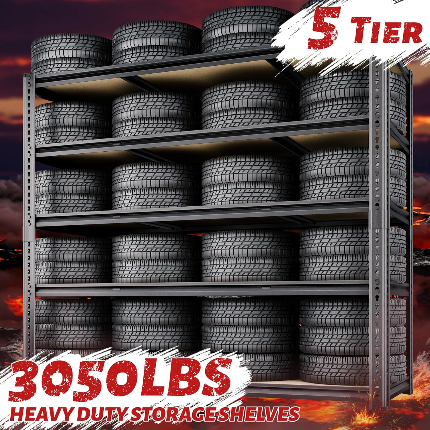 - 【3050LBS Garage Storage Shelves with 10 Reinforcing Support Ribs】Constructed with 5mm high-density fiberboard and a rolled-edge, thickened metal column frame, each shelf features two additional reinforcing support ribs at the base for robust support. Each shelving holds up to 610 lbs, with a total weight capacity of 3050 lbs. Industrial-grade stability and durability make it ideal for commercial use in factories and businesses.