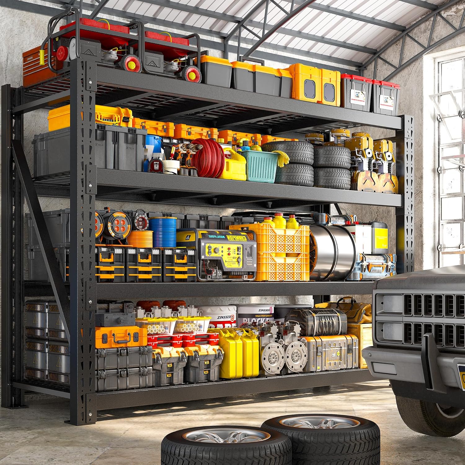 - ăAdustable Industrial ShelvingăGarage shelving heavy duty with adjustable design, no need for tools to adjust the height of the tiers to DIY storage space, whether it's a large garage tools accessories or small items can be easily stored.