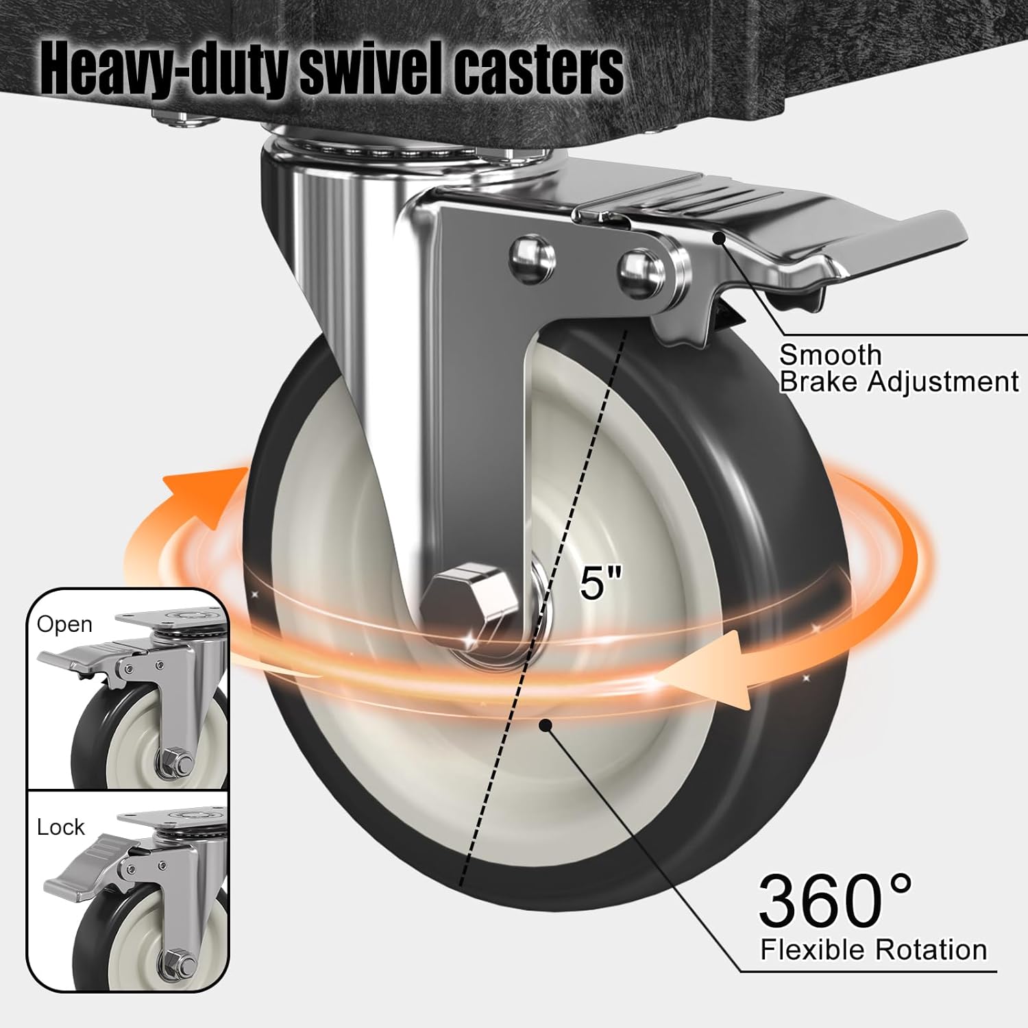 - Effortless Mobility: Equipped with 5-inch swivel casters, allowing smooth and easy movement across different surfaces with minimal effort.