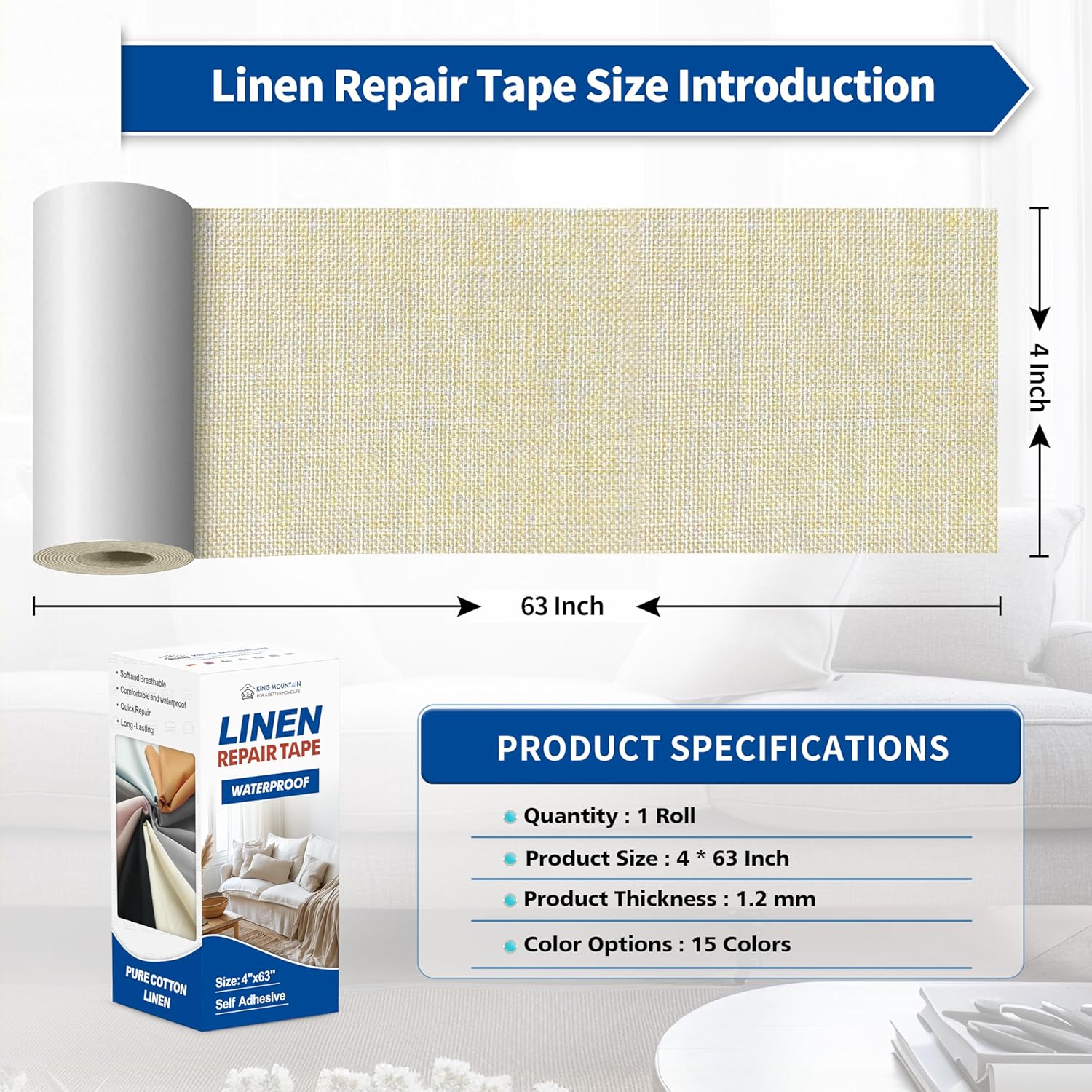 - Soft Fabric Repair Tape: Classic size 4" x 63", economical and practical, made of pure cotton linen repair tape, with a smooth and soft surface, comfortable and breathable, scratch-resistant and durable, it does not fade after long-term use, providing the comfort you desire while completing the repair.