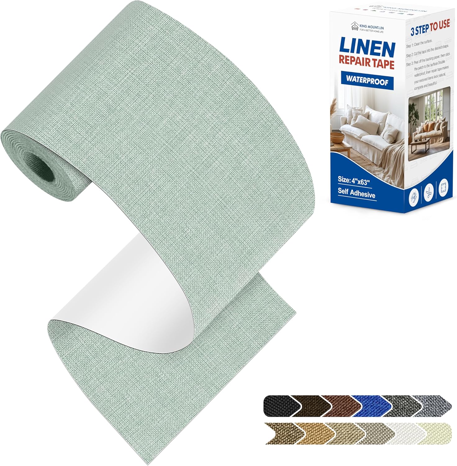 KING MOUNTAIN Linen Repair Patches, Self-Adhesive Fabric Patches, 4 X 63 inch Extra Size, Multi Color, Can be Used for Sofa Repair and Linen Clothes Repair (Light Green)