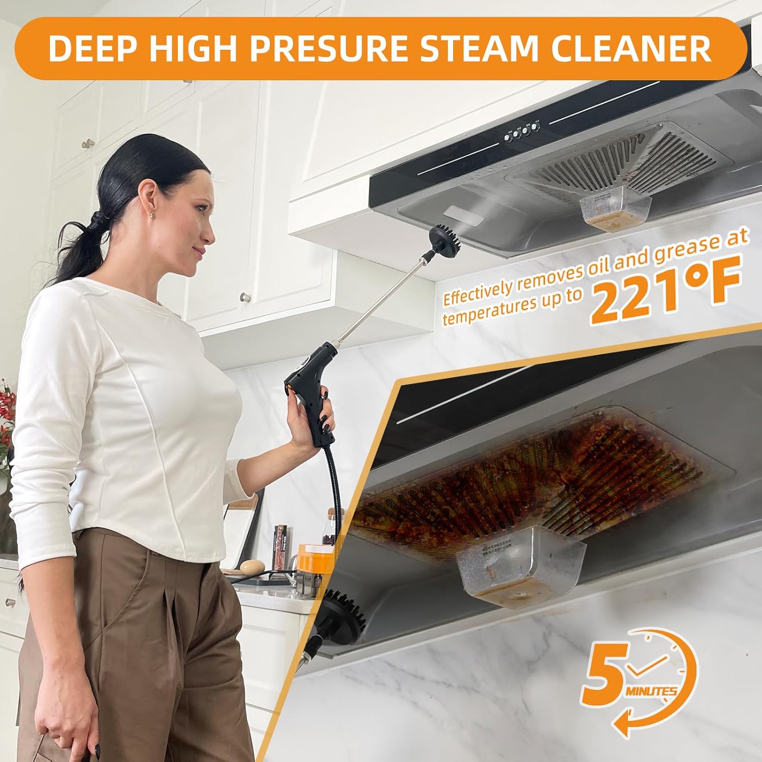 - Home steam cleaner: Steamer for cleaning with a handle-mounted 6-level adjustable steam control, steam cleaners 1500W power operation, delivering 3BAR pressure and 221°F temperature. Heats up in just 15 seconds, and features a 40.58oz water tank (providing up to 30 minutes of continuous runtime), extending use time and reducing the need for frequent refills.It is very suitable for use as a household portable steam cleaner or a grout steamer for tile floors for various surfaces.