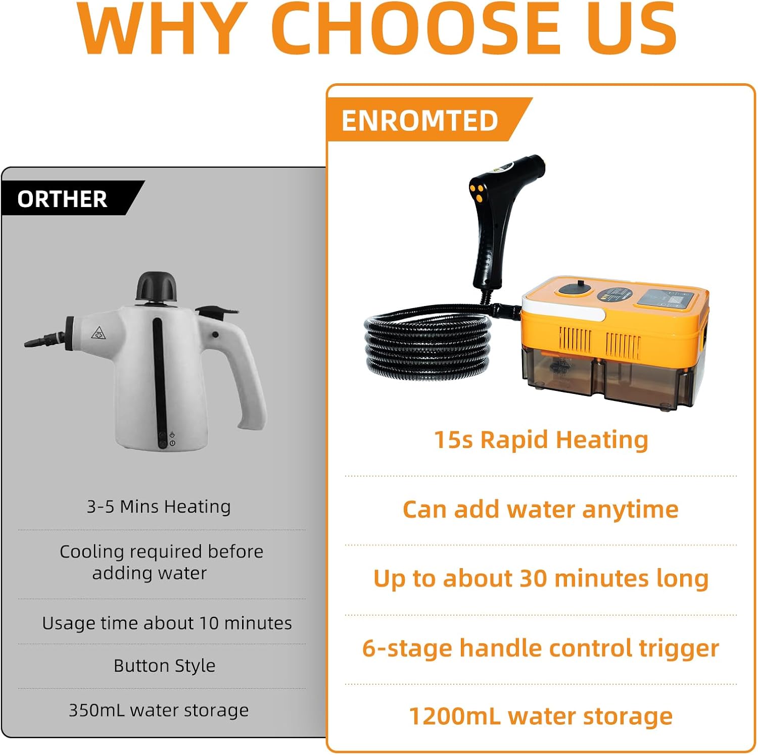 - Steam Cleaner for Car:Versatile With a wide range of attachments and nozzles, our steamer for car detailing can be used for various cleaning tasks inside and outside the cars. Use our car detailing steamer not just limited to the interior and wheels; you can also use it to clean other parts of your car, such as the exterior bodywork and the windshield.This handheld steam cleaner for home offers a comprehensive, chemical - free, and efficient cleaning solution that will leave your car looking and feeling like new