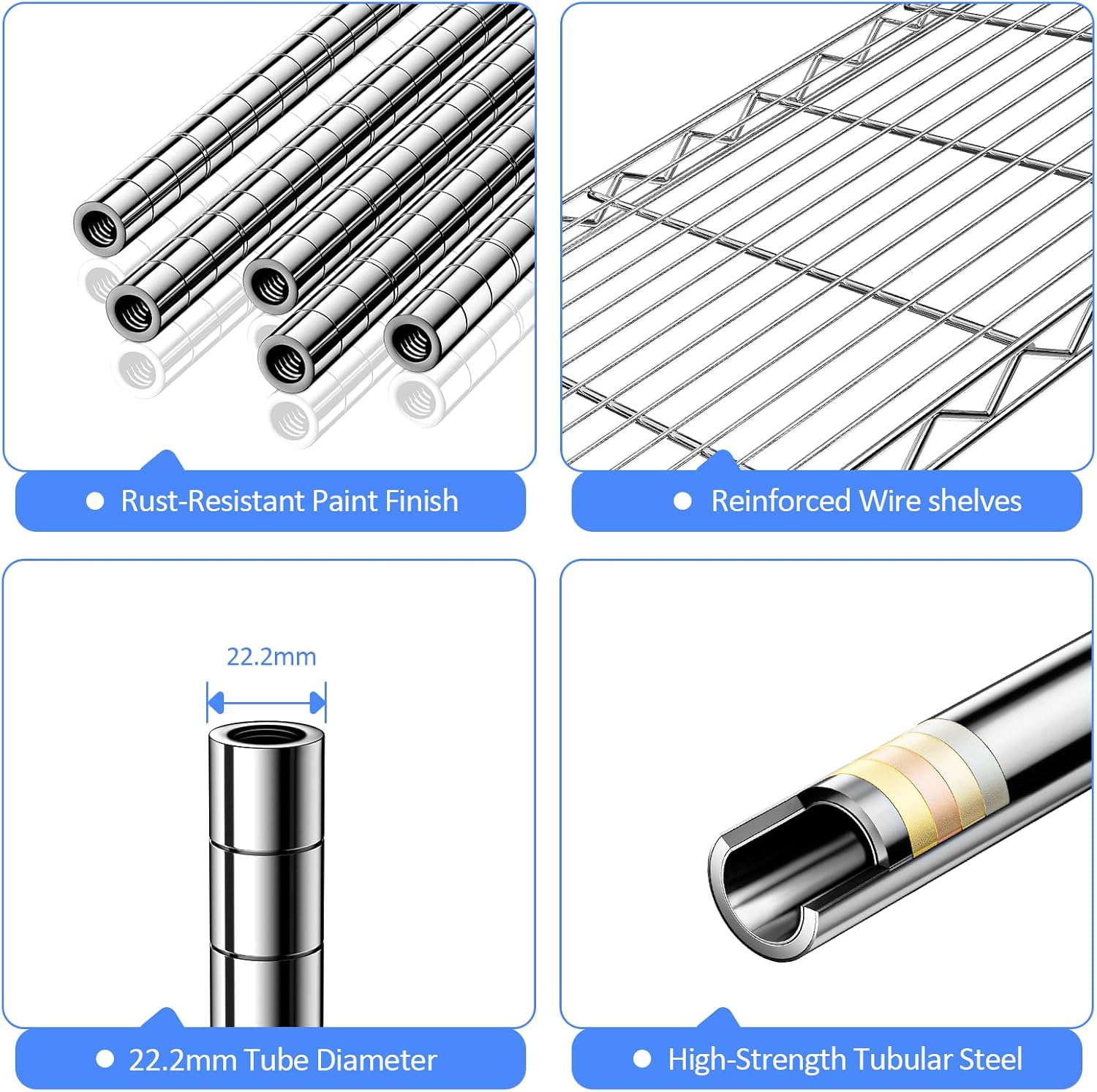 IZEUK 5-Tier Heavy Duty Metal Storage Shelving Unit (Chrome, 17.7" D x 47.2" W x 72.3" H, 1750 lbs Capacity), Adjustable Steel Wire Rack Shelf Organizer for Garage, Kitchen, Pantry, Basement, Laundry