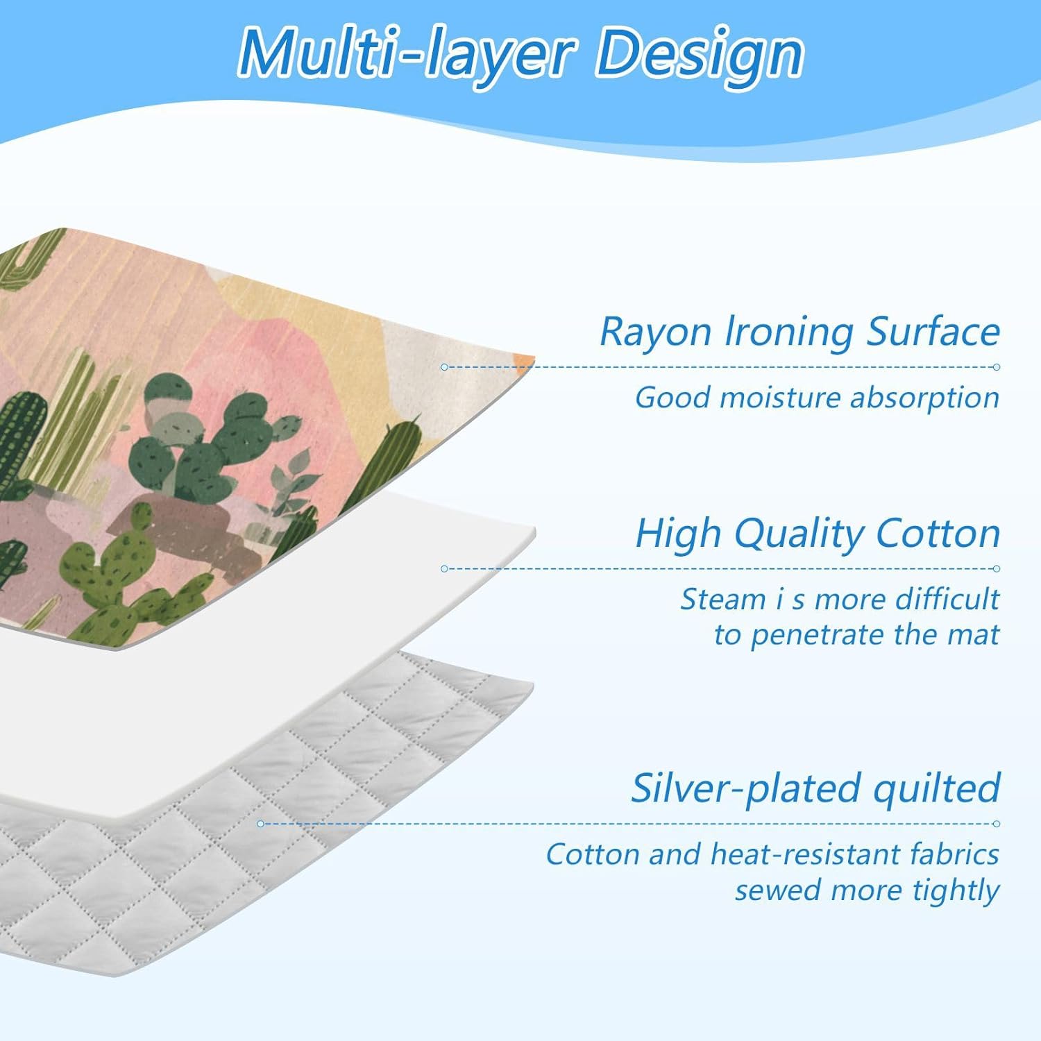 - Material: The ironing mat for table top has 3 layers, rayon ironing surface + high quality cotton + silver-plated quilted fabric, making it durable to use