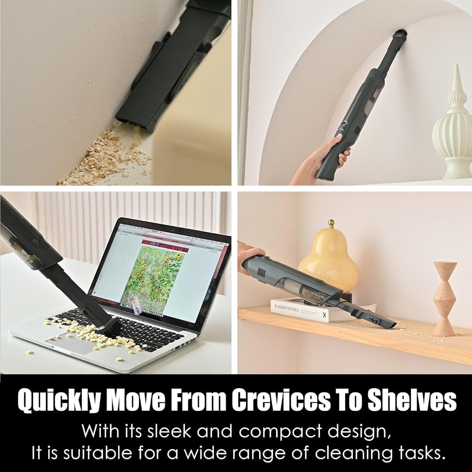 - Whisper-Quiet Operation: Say goodbye to disruptive motor noise with the handheld vacuum's unique noise reduction design. Enjoy powerful suction without the disturbance, allowing for peaceful cleaning anytime, anywhere. 30-Min Long-Lasting Cleaning Power: With a high-capacity 2600mAh lithium battery, this handheld vacuum provides up to 30 minutes of continuous cleaning on eco mode. Tackle all your cleaning tasks, from upholstery to car interiors, effortlessly and efficiently.