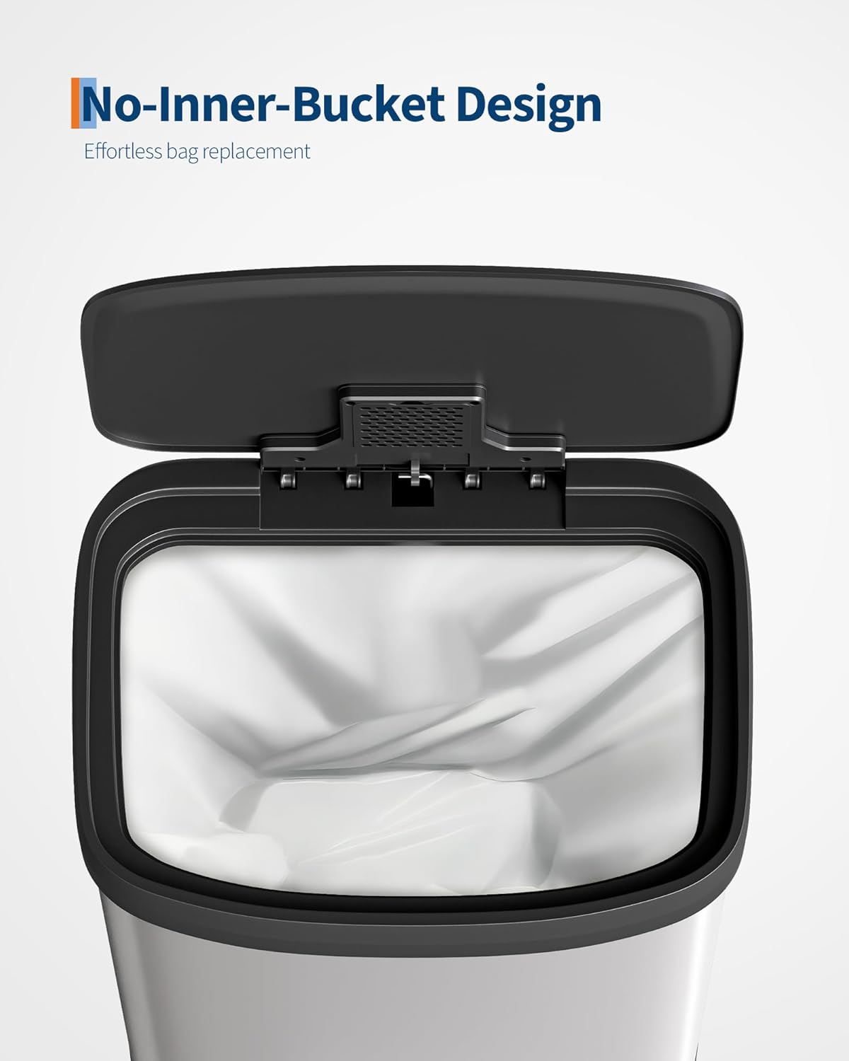 - Integrated Liner Rim and Stability: The built-in liner rim conceals bag edges for a clean look while securely holding bags in place. Anti-slip rubber feet keep the bin stable on various floor types including tile, hardwood, and low-pile carpet.
