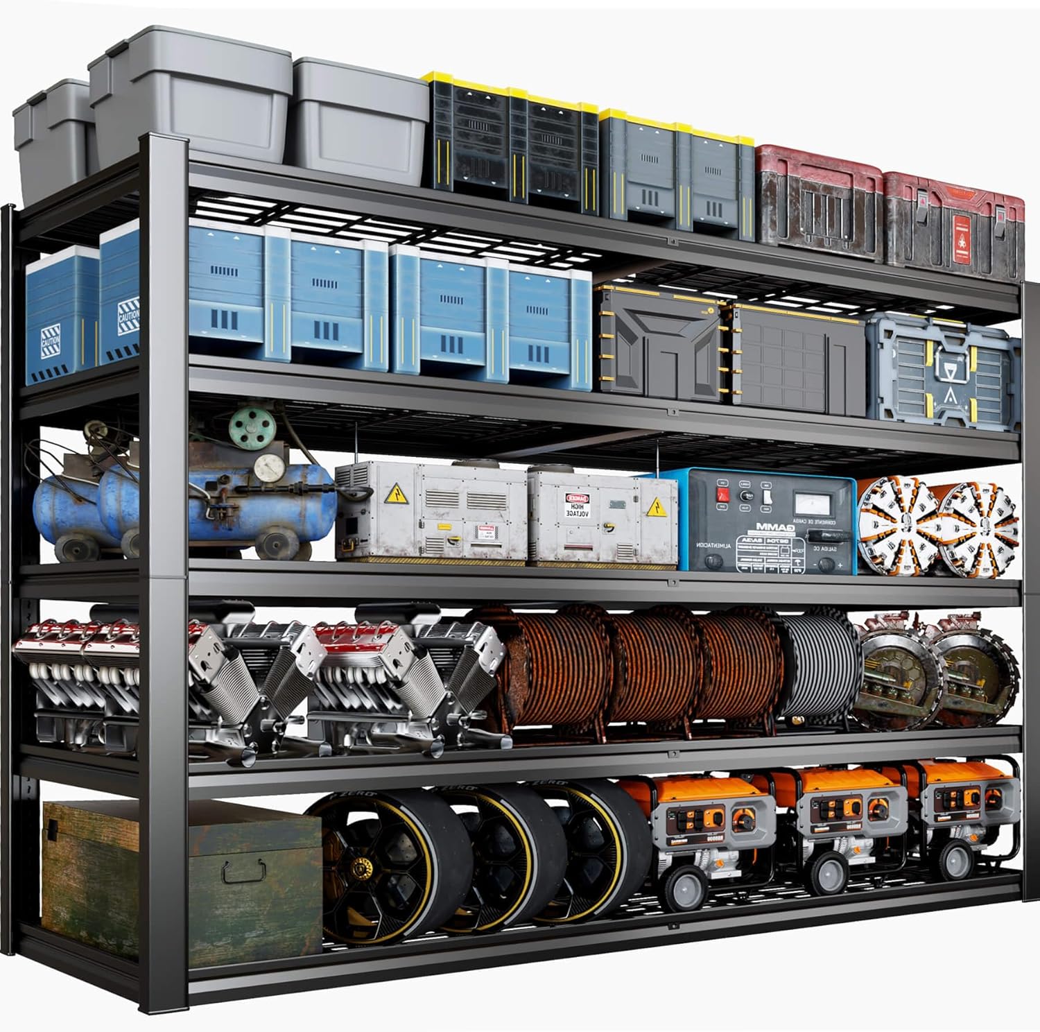 - ăAdjustable Heavy Duty Metal Shelves to Meet Different NeedsăThe height of each tier can be adjusted not only by moving the crossbar to meet the needs of different heights, but also the shelves can be assembled or disassembled into a variety of different metal shelves. The 84-inch tall 3500 lb. load-bearing garage shelves are not only strong, but they also give you more storage space.